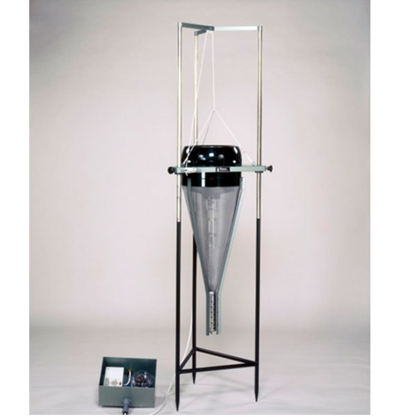 工作原理:根據風速和采集昆蟲的大小調節采集器的方法可以參考Taylor發表的文章(Ann. appl. Biol. Vol. 50, pp 405 – 421.)。采集到的昆蟲被預先設置計時裝置按時間段的間隔分離開,這樣就能夠顯示昆蟲的飛行周期。采集器支架為鋼管焊接,厚鎘鍍層防止腐蝕。操作箱為鐵制施以綠色瓷釉,室內開關和定時器通過防水的橡膠插座和采集器連接。多速率可逆的風扇為采集器提供連續的氣流,在所有電壓和頻率下都可用。