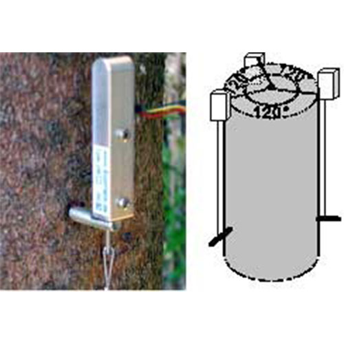 用途:DV是專門用來(lái)連續(xù)測(cè)量樹干縱向變化(不是生長(zhǎng))的。樹干的長(zhǎng)度因其含水量, 風(fēng)和彎曲而發(fā)生變化,因此樹干縱向變化是一個(gè)可以用來(lái)判斷樹體含水量(干旱程度),競(jìng)爭(zhēng)壓力和機(jī)械壓力的參數(shù)。