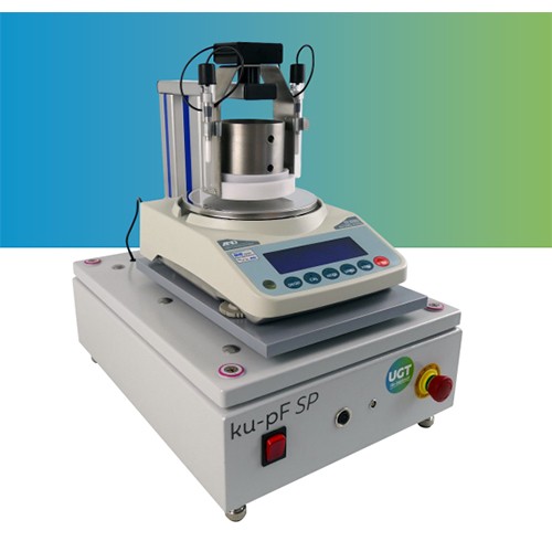 Ku-pF Sp儀器由一個外殼、一個樣品支架的支撐臂和一個帶升降裝置的稱重板組成,稱重板位于實驗室天平的位置。電子部件(電源裝置、變壓器、帶控制器的發動機和記錄器)在殼體中。樣品支架攜帶土壤樣品,配有兩個張力計和一個電子組件,該組件將張力計值數字化,并通過雙線電纜將其發送到數據記錄器。通過支撐臂上的觸點錐中的觸點連接到數據記錄器。